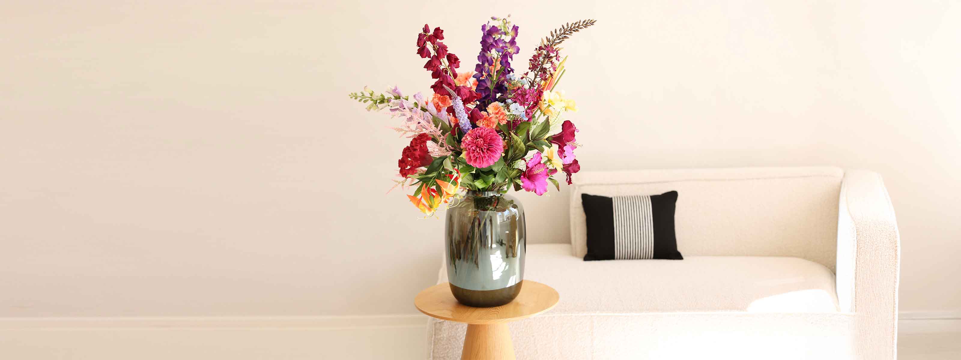 Bekijk onze prachtige collectie zijden boeketten in vaas en laat je verrassen door de ruime keuze. Of het nu voor thuis is of op kantoor, bij Vaas & Zo vind je altijd het perfecte boeket.